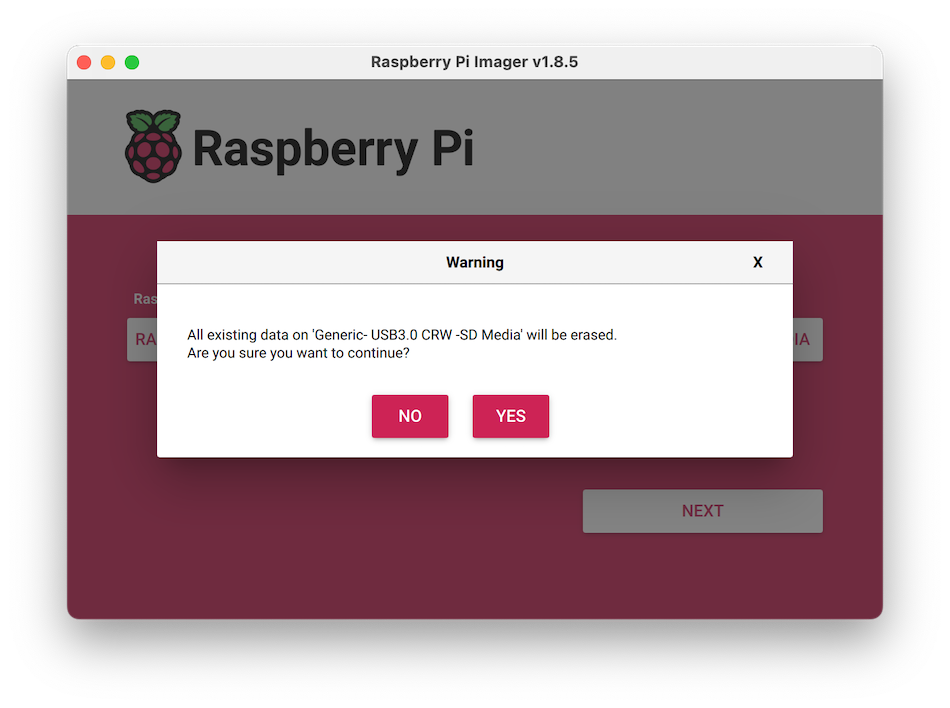Click CHOOSE DEVICE. Select your model of Pi, i.e. Raspberry Pi 4 or Raspberry Pi 5.